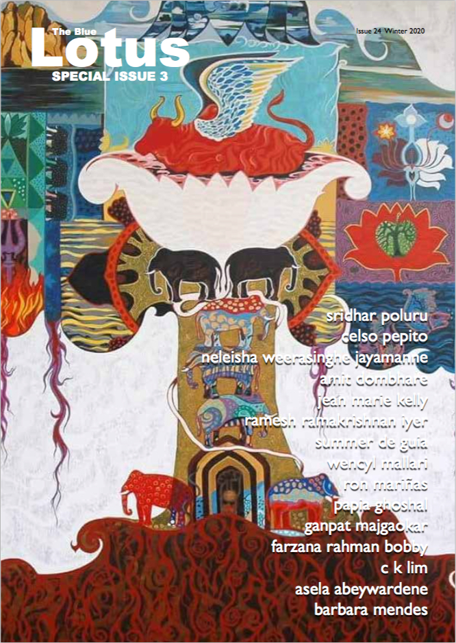 I sit here (in Cambodia), awash with sounds of the gamelan, as the Director of the 17th Asian, African & Mediterranean International Modern Arts Exhibition, Luo Qi (China’s foremost exponent of Calligraphysm and Characterism), sits in Portugal and many of the artists featured in this new online exhibition sit in their respective countries, or are displaced and awaiting passage home. My sky is blue. Sunlight streams gently through my apartment’s open door. There is a slight breeze rustling the bamboo. White butterflies dance of joy.